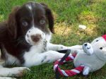 We picked this little guy up last friday to add to the family, he is a brittany but is liver and white in stead of orange and white. 8 weeks old and full of piss and vinegar!
