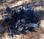 Buddy that we call HITMAN shot a crow that landed head high on a limb. Flipped upside down while hanging on. Soon expired and just hung there.......