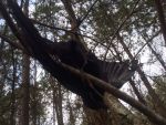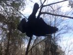 Buddy that we call HITMAN shot a crow that landed head high on a limb. Flipped upside down while hanging on. Soon expired and just hung there.......